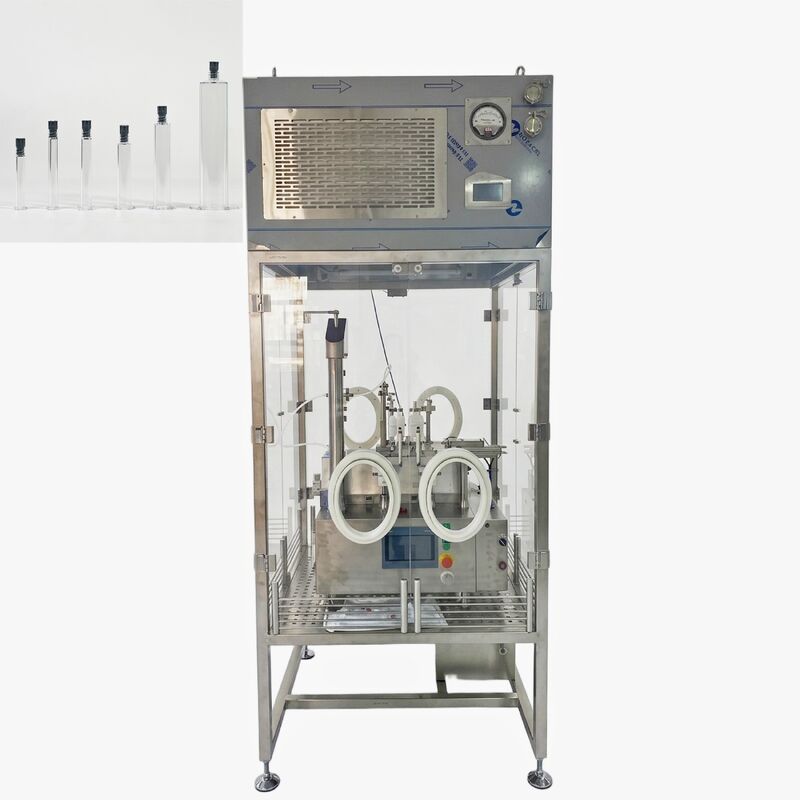 Cette machine compacte de remplissage et de bouchage sous vide de bureau est spécialement conçue pour les seringues et les flacons préremplis. Équipée d'une hotte à flux laminaire, elle garantit un environnement stérile pour les applications pharmaceutiques de haute précision.